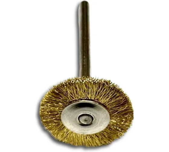 Their "supplier" is a disc wire brush with brass bristles. Used as an attachment for drills, screwdrivers, or engravers (e.g., Dremel) for cleaning, polishing, and removing rust, scale, paint, and burrs from metal and other hard surfaces.