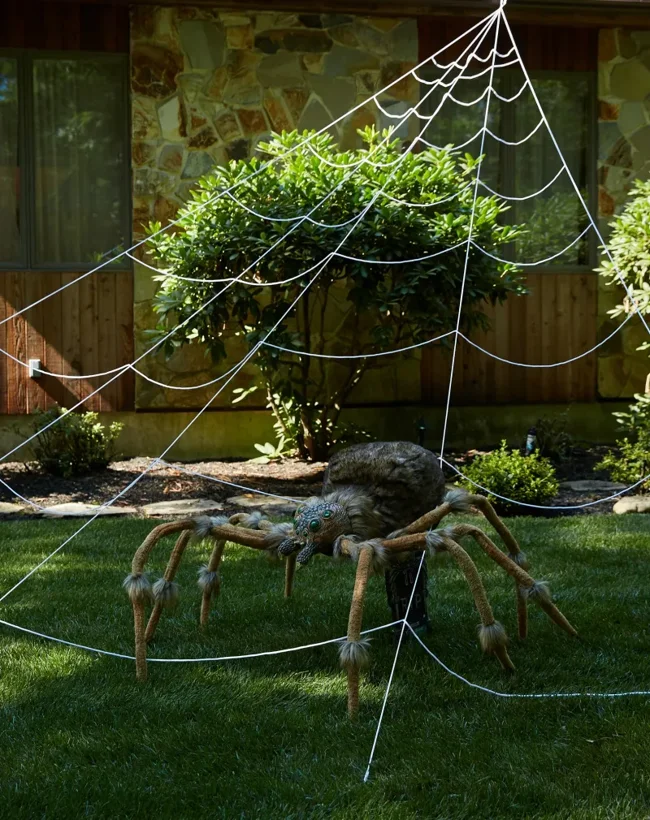 A giant Halloween spider web hanger. The hooks are inserted into the base, and the web is hung from them.