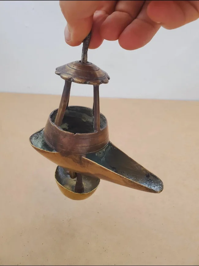 Antique bronze Betty lamp - whale oil pendant lamp, 18th century.
