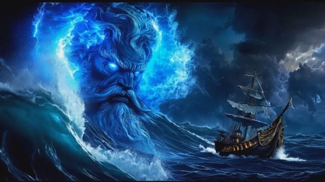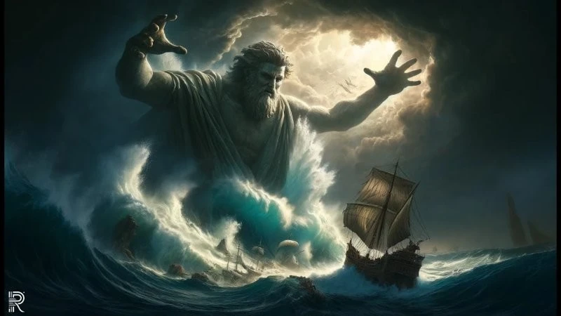 For the Greeks, however, what happened was no accident. Herodotus directly calls it divine retribution. Earlier in their campaign, the Persians had desecrated the temples and statues of Poseidon. And now the god of the seas and earthquakes, whose trident crushes rocks, unleashed his wrath on the sacrilegious deeds, revealing his power.