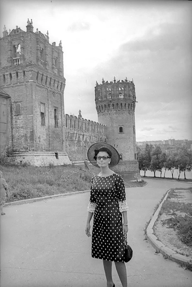 4. Sophia Loren in front of the Novodevichy Convent in Moscow, 1968