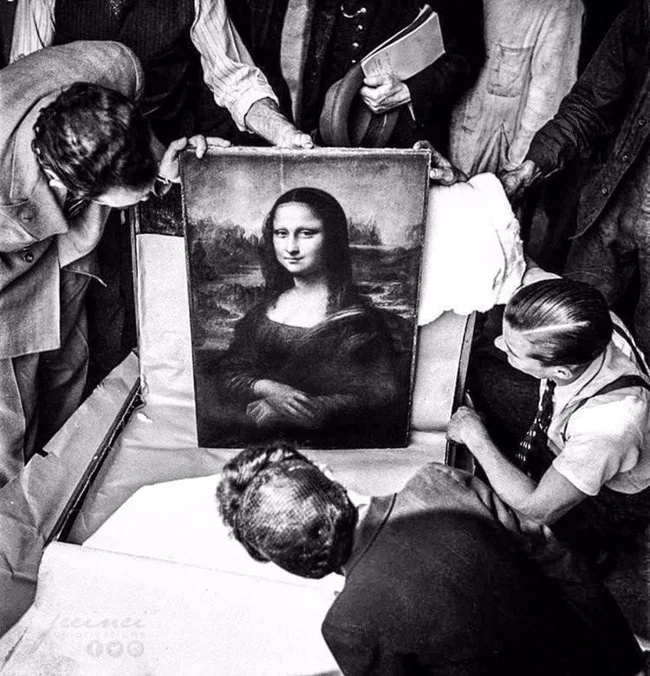 13. The Mona Lisa is removed from its hiding place during World War II, 1945. year