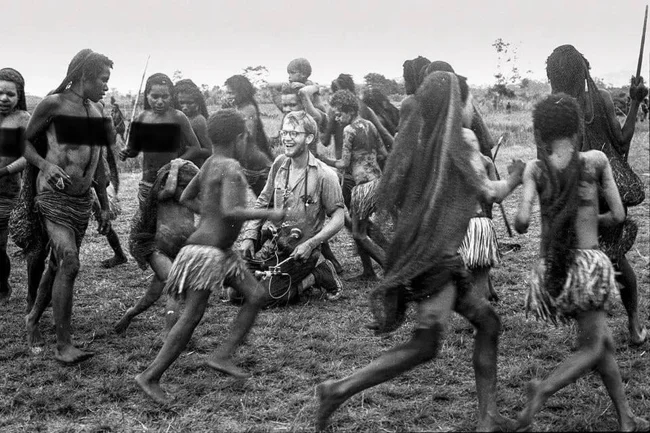 14. This is one of the last known photographs of ethnographer and anthropologist Michael Rockefeller (1961), in which he is depicted with members of a New Guinea tribe known for cannibalism.