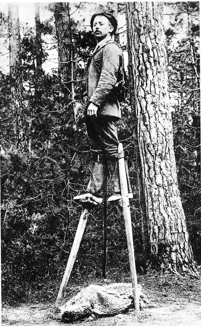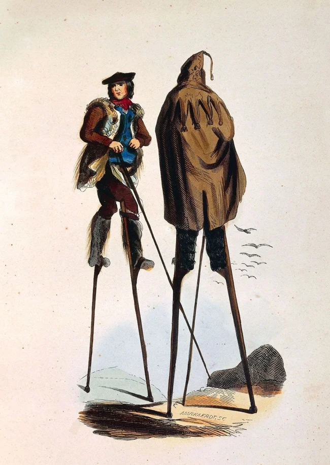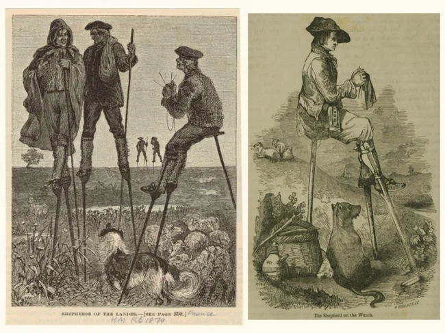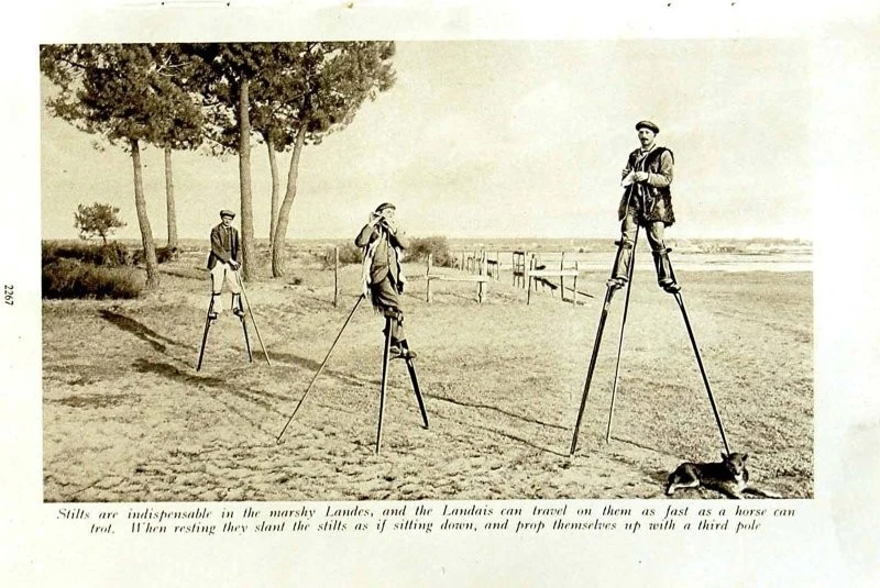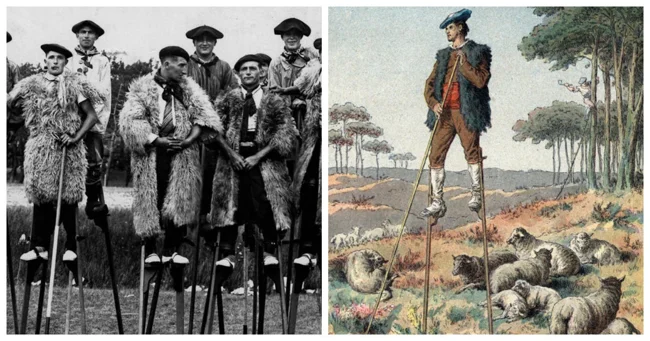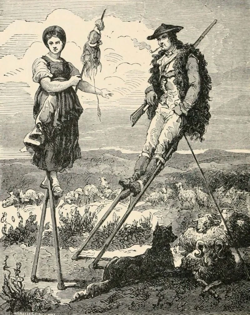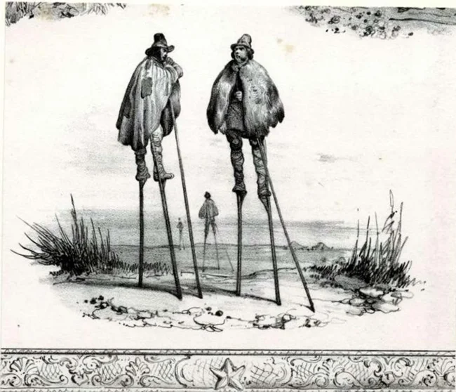 In fact, almost the entire population of Landes walked on stilts on rainy days to avoid getting stuck in the muddy ground. This method of transportation was so effective that a person on stilts could easily keep up with a trotting horse.