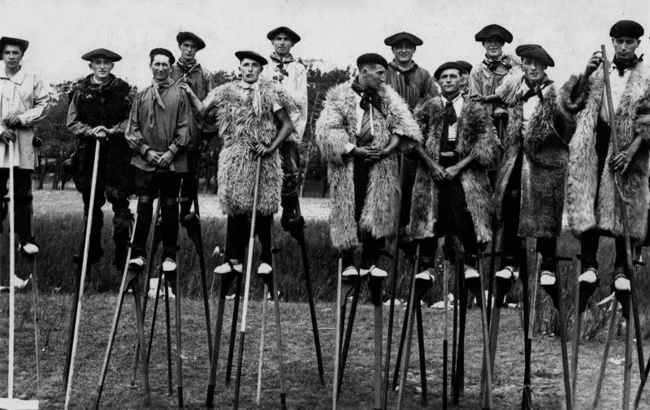 Trained to walk on stilts from childhood, many shepherds achieved incredible virtuosity. They could pick up a pebble from the ground, pluck a flower, pretend to fall and then nimbly right themselves, or run on one leg.