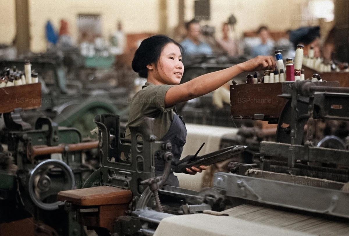 In one of the workshops of the Nam Dinh Textile Mill. Democratic Republic of Vietnam, 1972.