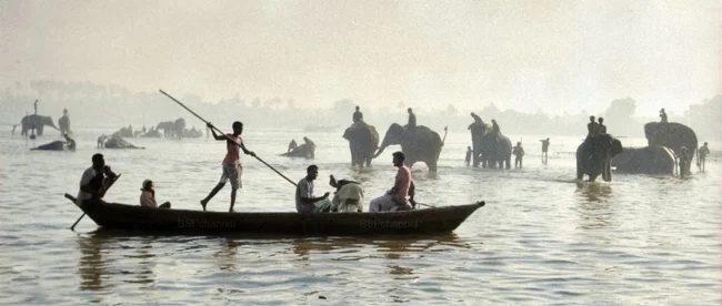 India, 1956. Washing elephants in the Ganges.