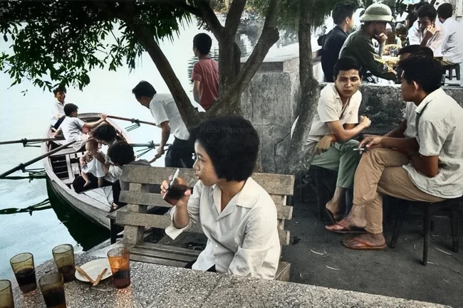 Lakeside cafe in Hanoi, Vietnam, 1969.