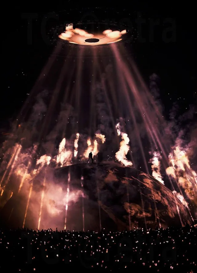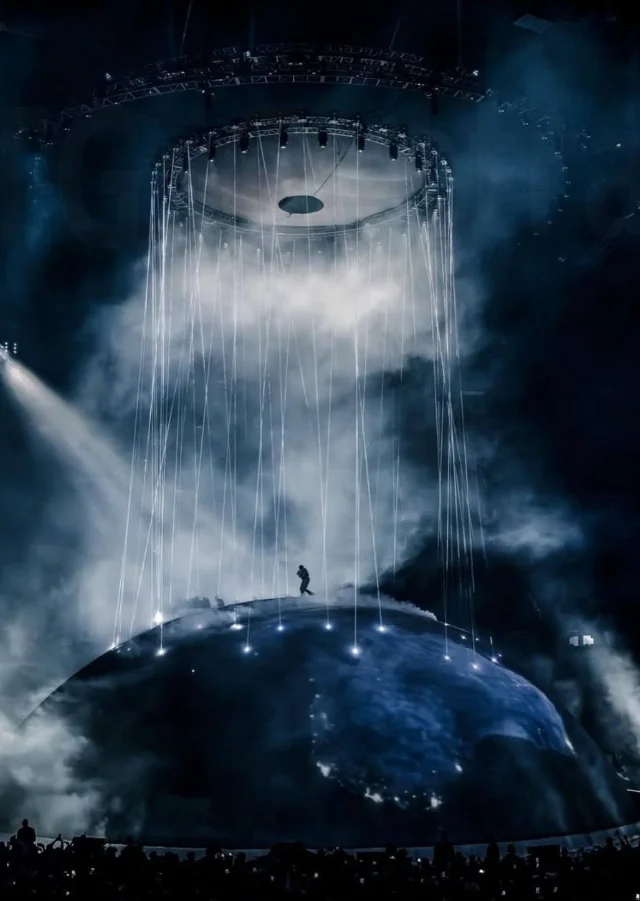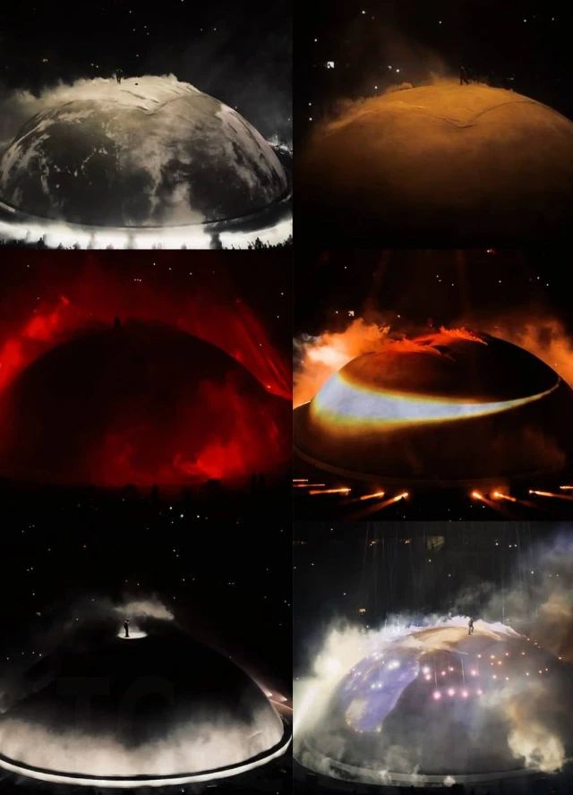 The stage design evolved throughout the performance: the enormous sphere transformed from a rotating planet to abstract imagery inspired by the cult anime Akira, including visual references to the nuclear explosion from the film's opening. Fans called the show one of the most spectacular and talked-about musical events in recent years, praising the scale of the production and visual effects. Despite technical difficulties and interruptions during the performance, the concert became a notable moment in the artist's career and generated widespread buzz online.