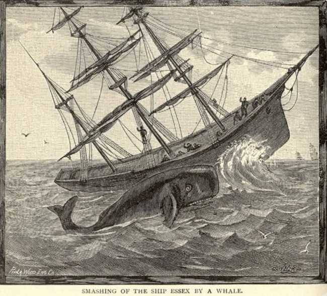 In 1820, 30 years before the publication of Moby-Dick, chilling news spread around the world: the whaling ship Essex had been destroyed by a sperm whale. The enormous beast rammed the 27-meter-long ship, breached its hull, and dived into the deep, evading harpoon attacks. The ship quickly sank, and the surviving crew found themselves in boats 2,000 kilometers from the nearest known land. Of the entire crew, only eight survived to reach civilization. It was this story that inspired Herman Melville to write Moby-Dick.