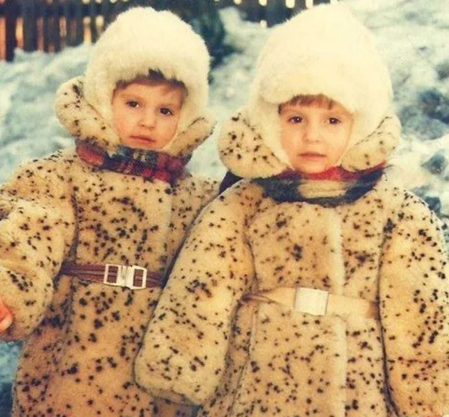 6. Fashionable twins on a winter stroll, USSR, 1970s