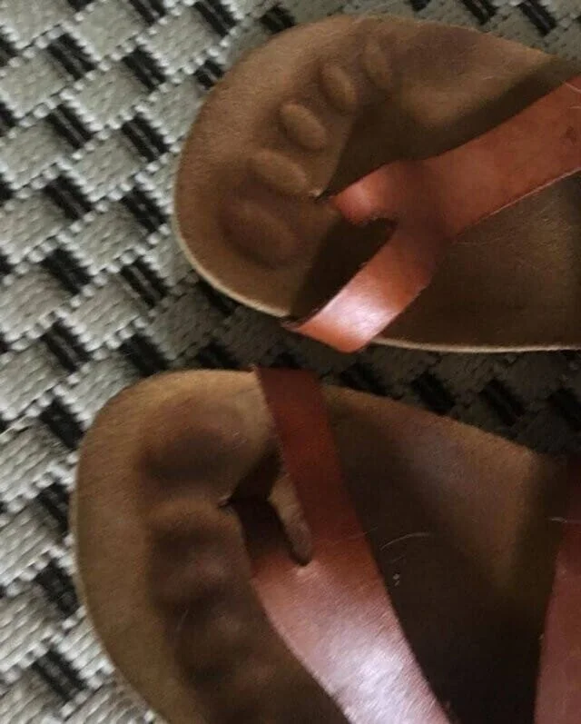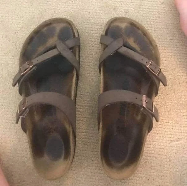 "Mom wore these sandals for 13 years. The prints of her feet on the soles will never be erased."