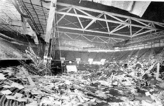 The roof of Kemper Arena consisted of several large-span coverings designed to protect against rain and wind, but the strength of the bolts holding it in place was miscalculated. In 1979, the roof collapsed. Fortunately, no one was injured.