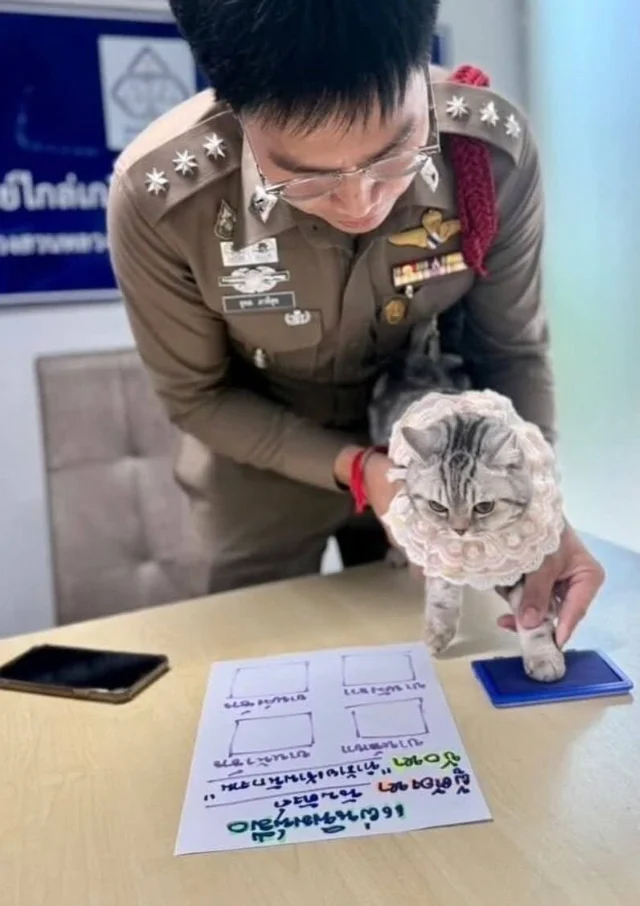 In Thailand, a cat was brought to the police station after officers allegedly scratched and bit several people. The animal was brought to the station in an attempt to identify its owner and file an "incident." They even took paw prints and photographs of the "offender" for records. Later, a humorous statement was written on the cat's behalf, in which it "admitted" that it was hungry and scared. The pet's owner was found the following day, and the situation was resolved successfully.