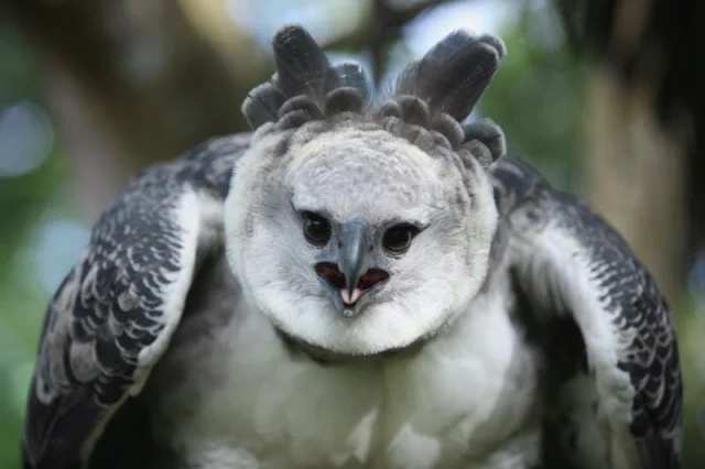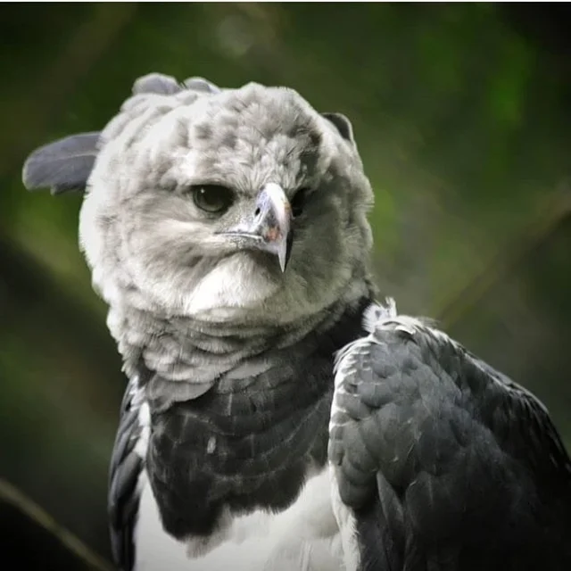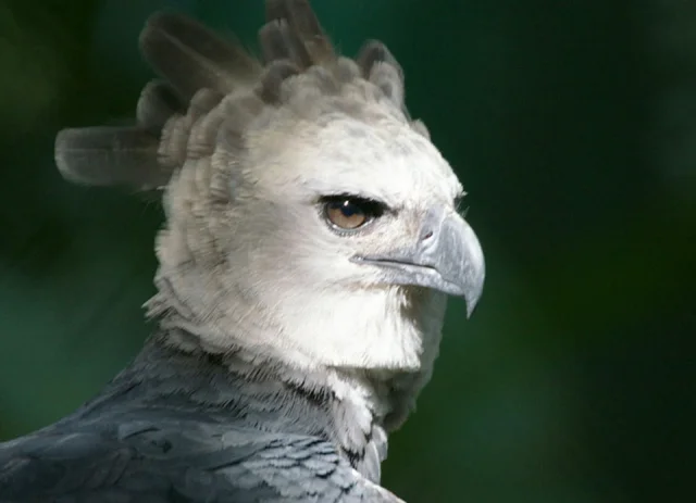The feathers on the harpy eagle's head form a distinctive facial disk, which helps it better sense prey. Sounds