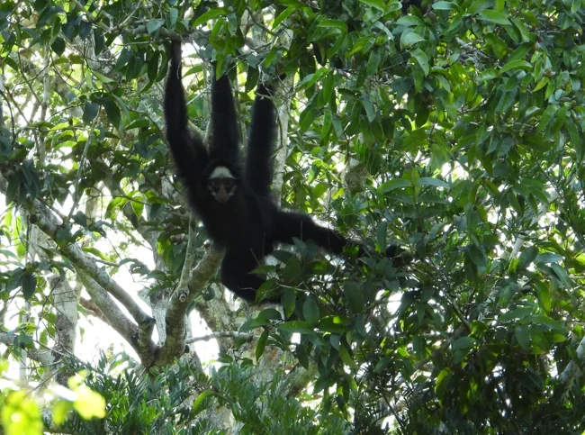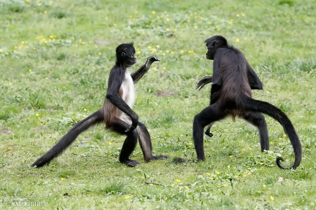 They're not particularly large, however—they reach no more than 70 centimeters in height and weigh no more than 10 kilograms. After all, a tail isn't a true arm; it's designed differently and has a severely limited load-bearing capacity. 12-15 kilograms is its theoretical weight limit; the tail vertebrae simply can't handle more. But look how they leap through the trees! While other medium-sized primates use their tails as rudders to help them maintain balance in difficult situations, spider monkeys have transformed their tails into a flexible and powerful arm!