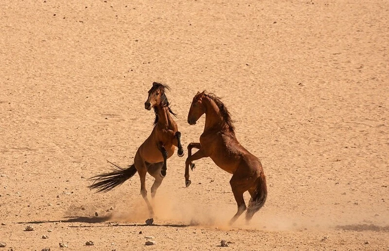 How did they end up in this inhospitable place? The story is shrouded in mystery, but the most plausible version dates back to World War I. They are descendants of cavalry horses brought by German troops during their occupation of Southwest Africa. In 1915, when the troops retreated or were defeated, the horses were released into the wild or simply escaped into the desert.