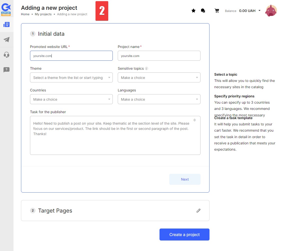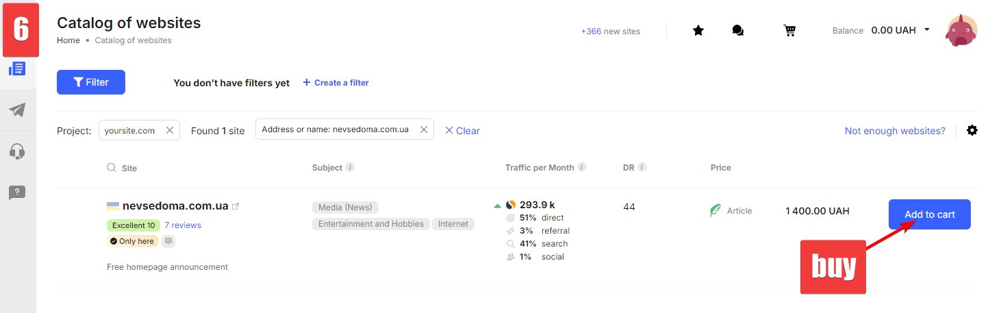 6. We found the site we needed and added it to the cart. In the future, we will place our post there with a link