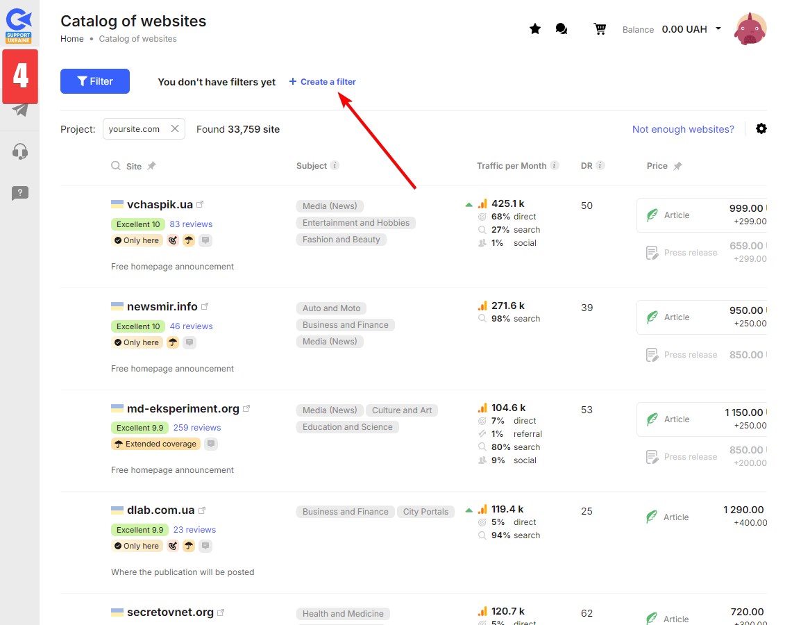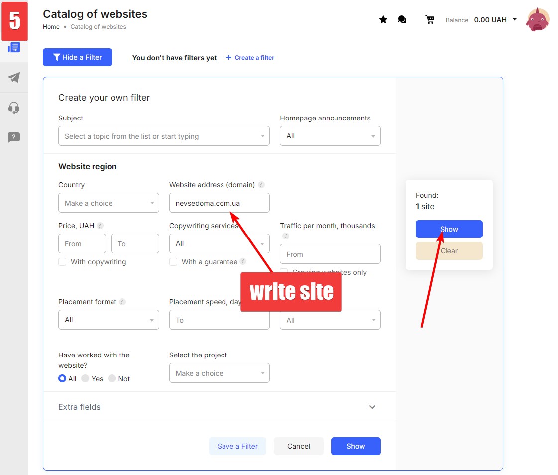 4. We get the site catalog and search for nevsedoma.com.ua through the filter