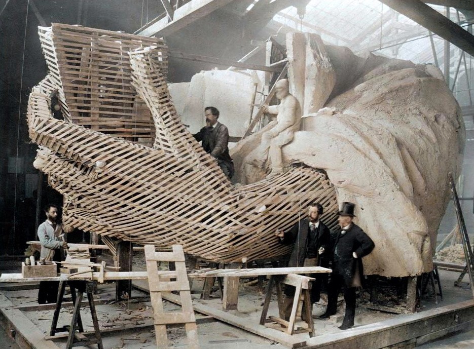 Assembly of the left arm of the Statue of Liberty in Paris, 1882