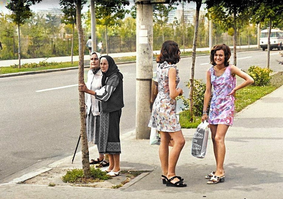 At the bus stop. Bucharest, 1973