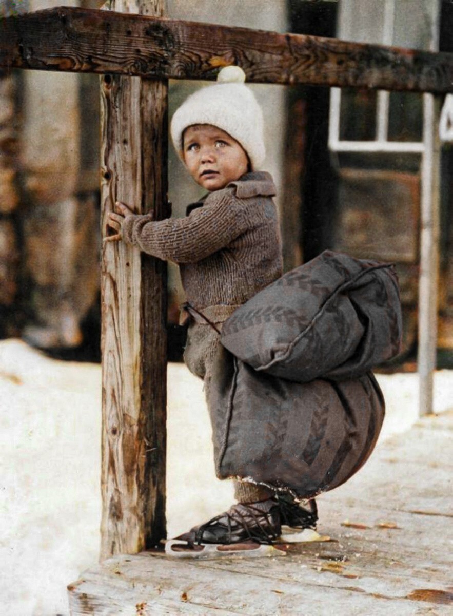 Dutch child learning to skate, 1933