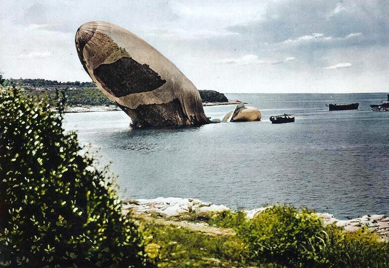 Sinking Italian Navy airship, 1915