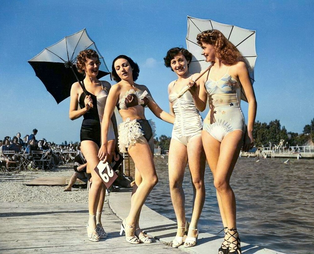 Demonstration of swimsuits. Paris, 1949