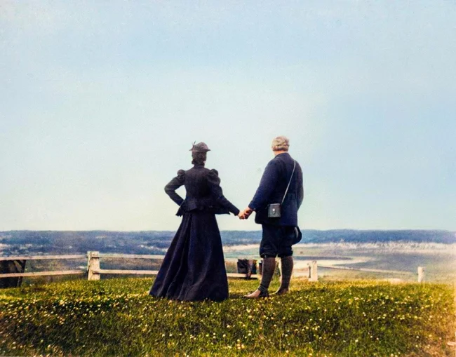 American-Canadian scientist, inventor and entrepreneur Alexander Graham Bell with his wife in Nova Scotia. Canada, 1898.