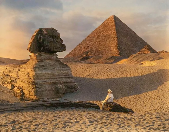In 1925, the sphinx was completely freed from sand drifts and opened for free inspection, here it is still with buried paws.