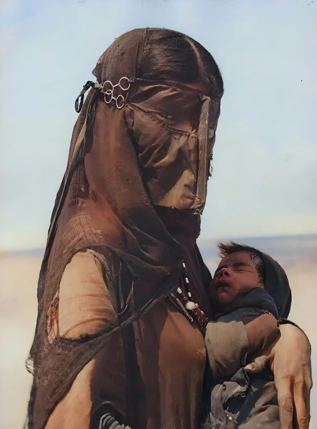 A Bedouin woman with a child. The Kingdom of Saudi Arabia, 1948.