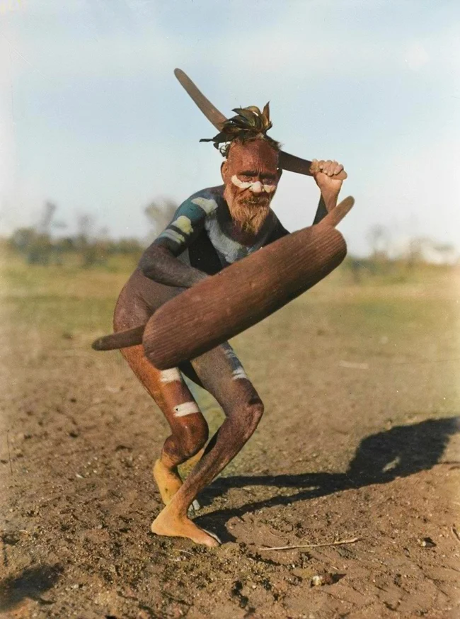 Aborigine with a boomerang, Australia, 1923.