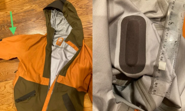 “My old jacket has a smooth, somewhat flexible, plastic-looking object sewn into the shoulder of the right sleeve. What it is?"