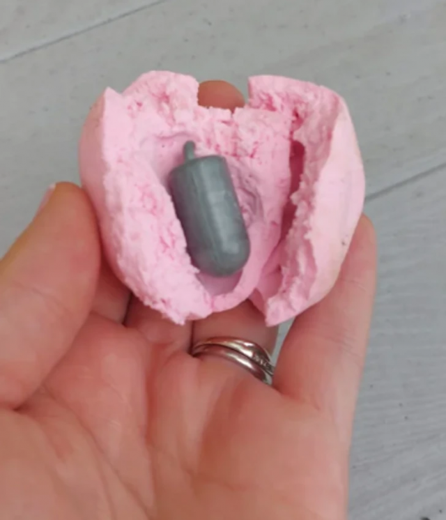 “Someone threw it in our garden. A pink plasticine-like thing with a metal object inside. What is this?"