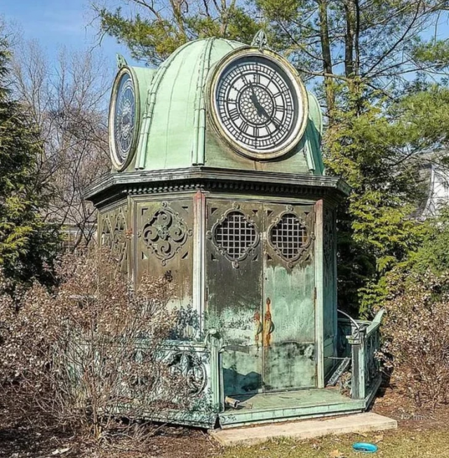 "Enclosed copper gazebo on a residential lot, the house was built in 1929"