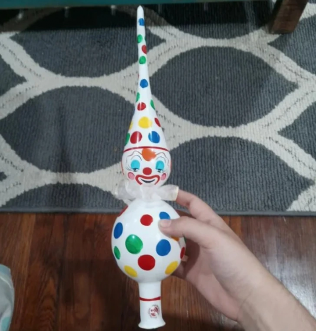 “What a clown. Made of glass, there is a hole at the bottom. Hollow inside"