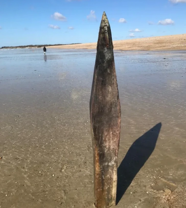 “About 1.5 m long, with a metal tip on top.”
