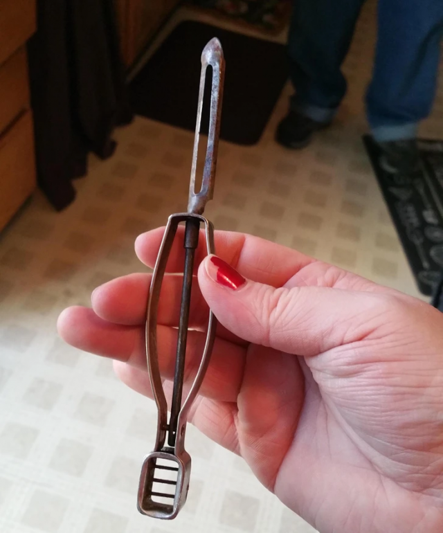 Answer: This is a device for removing plant leaves. We insert the stems into the loops, press them down with the teeth and pull, for example, parsley through the loops.