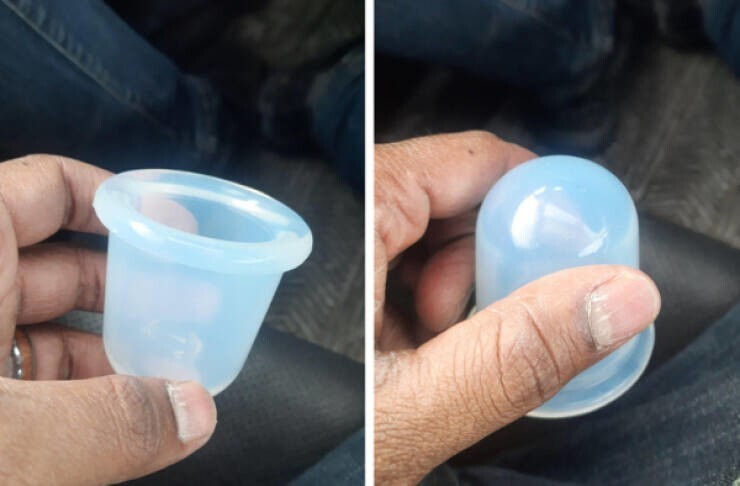 18. "Silicone cup? This thing came to my parents in the mail from an unknown address. The material is malleable."