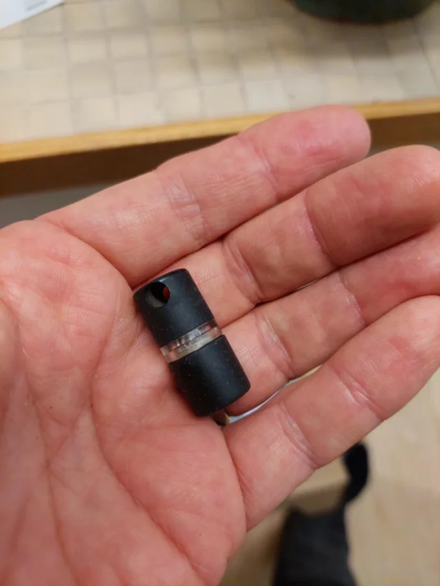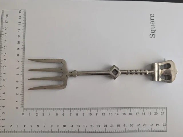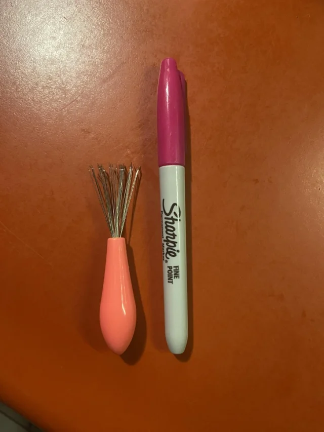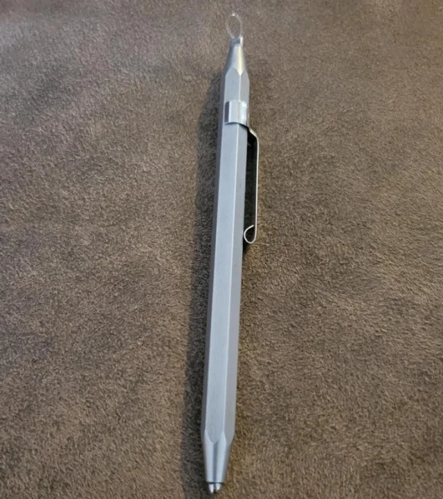 "A metal object in the shape of a pen with a loop and a ball at the end"