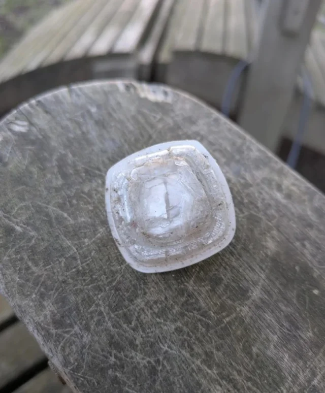 "Found this blue disk in a bag of chips with sour cream. It has some writing on it"