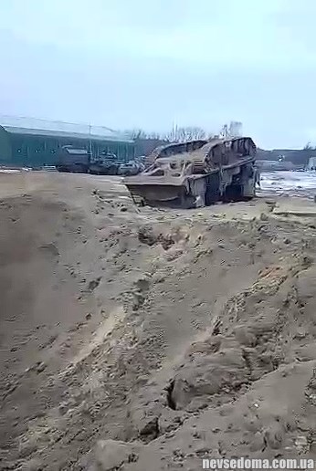 On the video – arrival consequences. Question: what does military equipment do in the industrial zone?