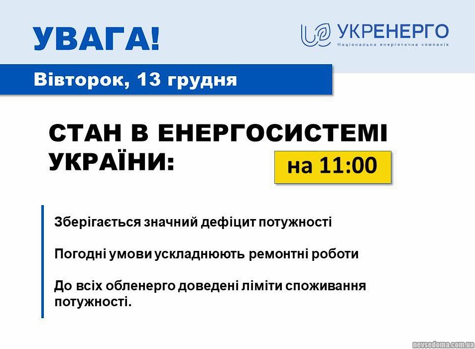 - A significant deficit remains in the energy system, bad weather complicates repairs, Ukrenergo reports.