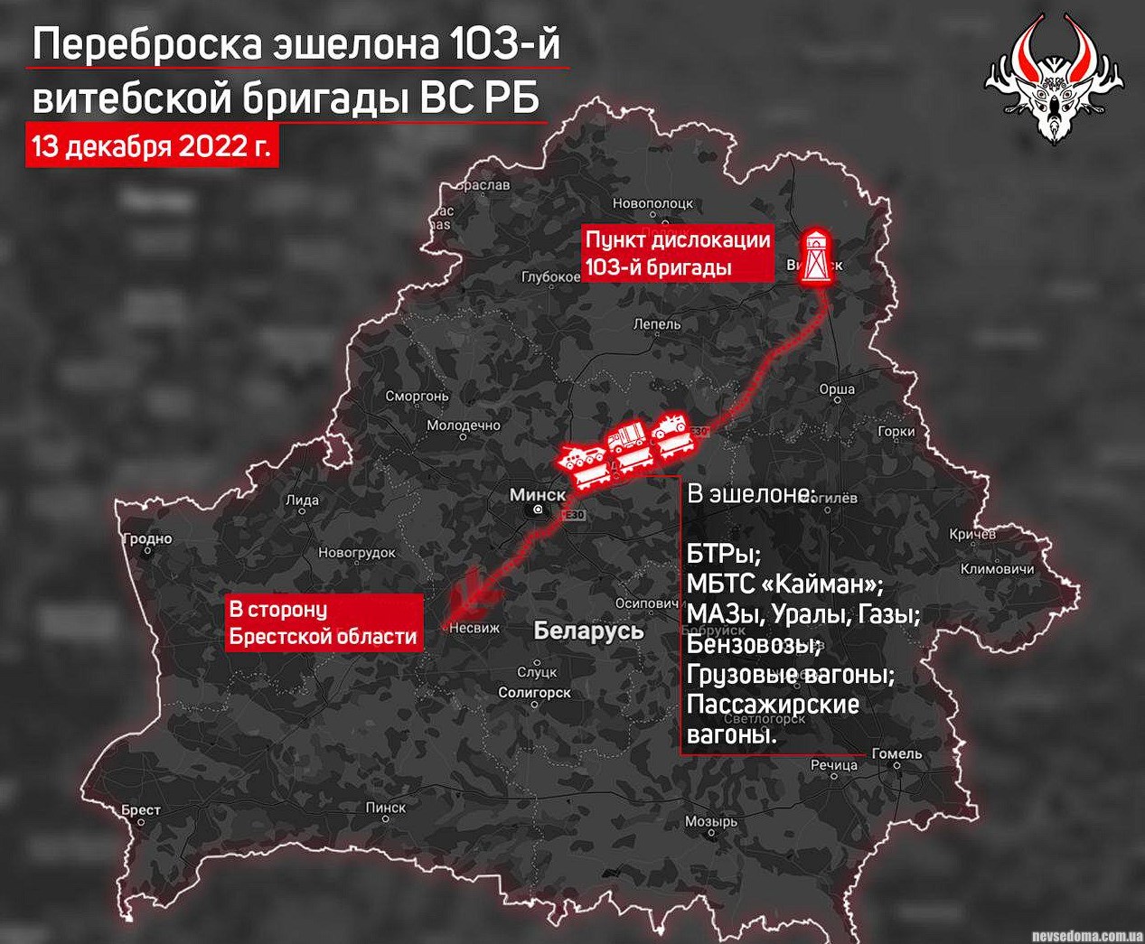 - Belarus continues to stir: the 103rd Vitebsk brigade of the SOF of the Armed Forces of the Republic of Belarus is being transferred to the Brest region.