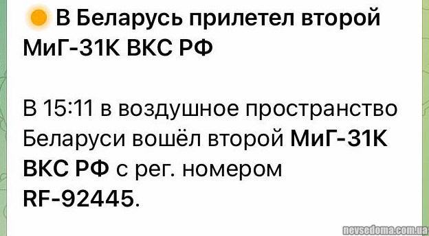 - 2 MiG-31K Russian Aerospace Forces have returned to Belarus.