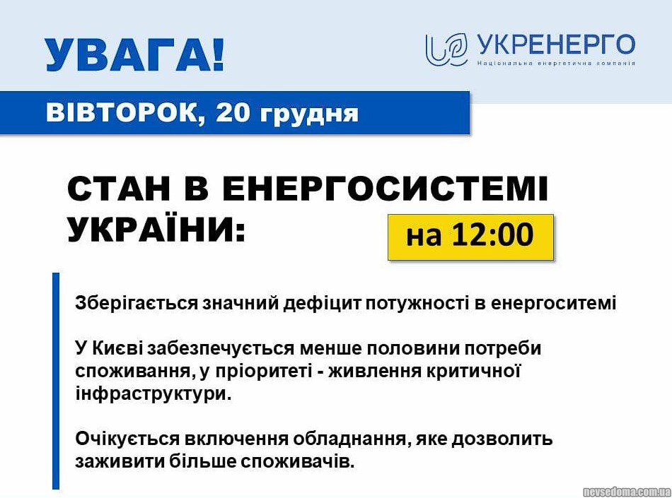 - Blackout in the Kyiv region may last until December 23, said the head of the Kyiv OVA Oleksiy Kuleba: