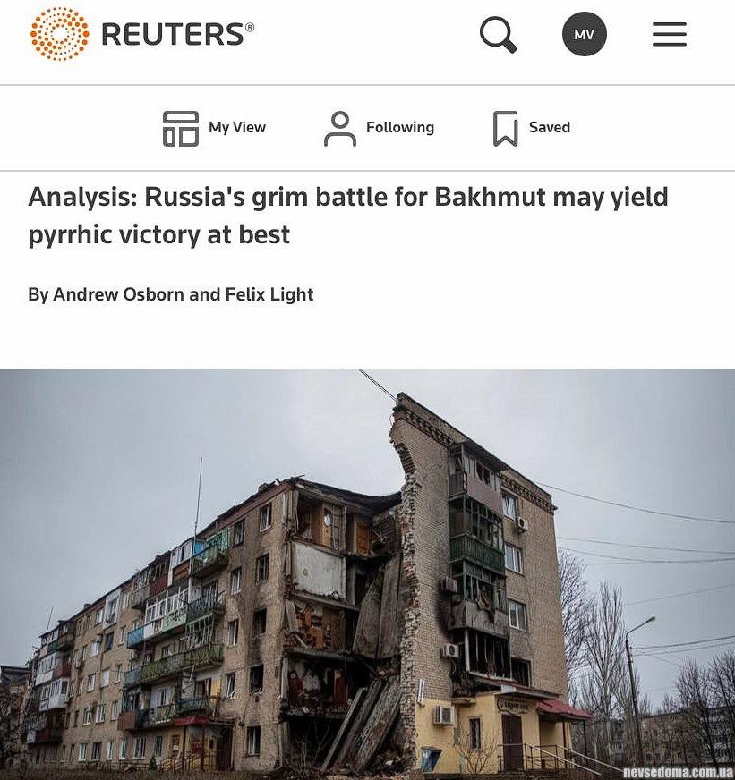 - Russia's battle for Bakhmut may turn into a pyrrhic victory: analytics (https://www.reuters.com/world/europe/grim-battle-bakhmut-may-yield-only-pyrrhic-victory-russia-2022-12 -20/) from Reuters.