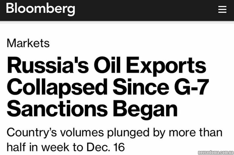 - Oil exports from Russia fell after the introduction of G-7 sanctions, writes (https://www.bloomberg.com/news/articles/2022-12-20/russia-s-oil-exports-collapsed-since- g-7-sanctions-began?srnd=premium-europe) Bloomberg.