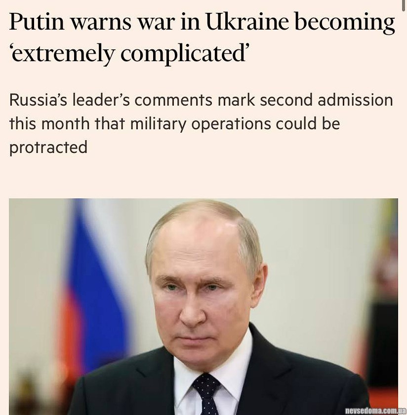 For the second time in a month, the President of the Russian Federation said that the war in Ukraine is becoming "extremely complicated"; and hostilities may drag on.