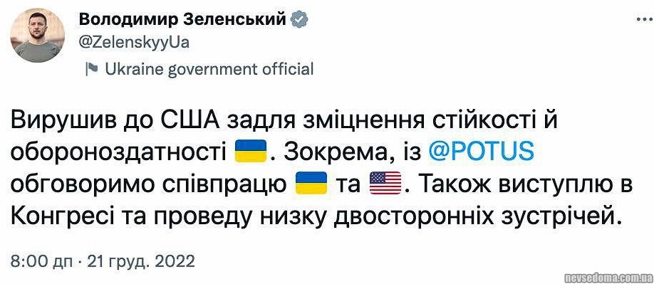 - Vladimir Zelensky officially confirmed his visit to the United States.
